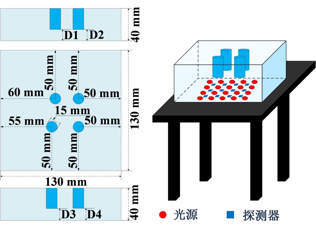 基于Brain-Explorer系统,本团队使用源-探交叠布配方式的实验装置(见图4)进行了静态实验(见图5、图6)以及动态实验研究(见图7),从而对本团队开发的锁相光子计数型fNIRS脑功能成像系统进行了成像能力评估。结果表明,Brain-Explorer系统可以在50ms积分时间下有效探测深度为12mm、对比度为1.1的兴奋变化,达到国际领先水平。同时,动态试验表明,本文所提出的近红外脑功能成像系统在并行测量的模式下具有良好的动态成像能力,并能从一定程度上说明其可用于追踪人脑内部兴奋变化过程。