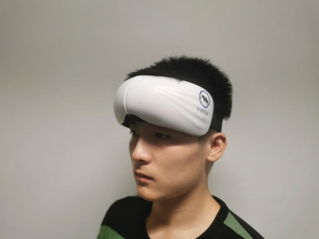 针对以上讨论,本团队从小型化、可穿戴式、通信方式和探测灵敏度等多方面进行考虑分析,设计了双波长、20通道、并行检测的可穿戴近红外脑功能检测系统。采用无光纤的贴片LED光源、高灵敏度光电二极管、无线通信、可充电电池和刚性-柔性电路板的设计方案。该设备尺寸为长55cm,宽6cm,类似于发带一样贴合于脑部检测部位,有效的实现了可穿戴性要求;由于双波长LED和光电二极管的能量消耗小,电源采用1800mAh的可充电电池,续航能力长达1个小时,设备总重量仅为310g,有效的减少了设备对于被试者的影响;无线通信采用ZigBee协议传输,具有高稳定性、高传输速度、一对多组网连接的特点,可用于检测多个被试者面对面社交互动时的大脑活动。