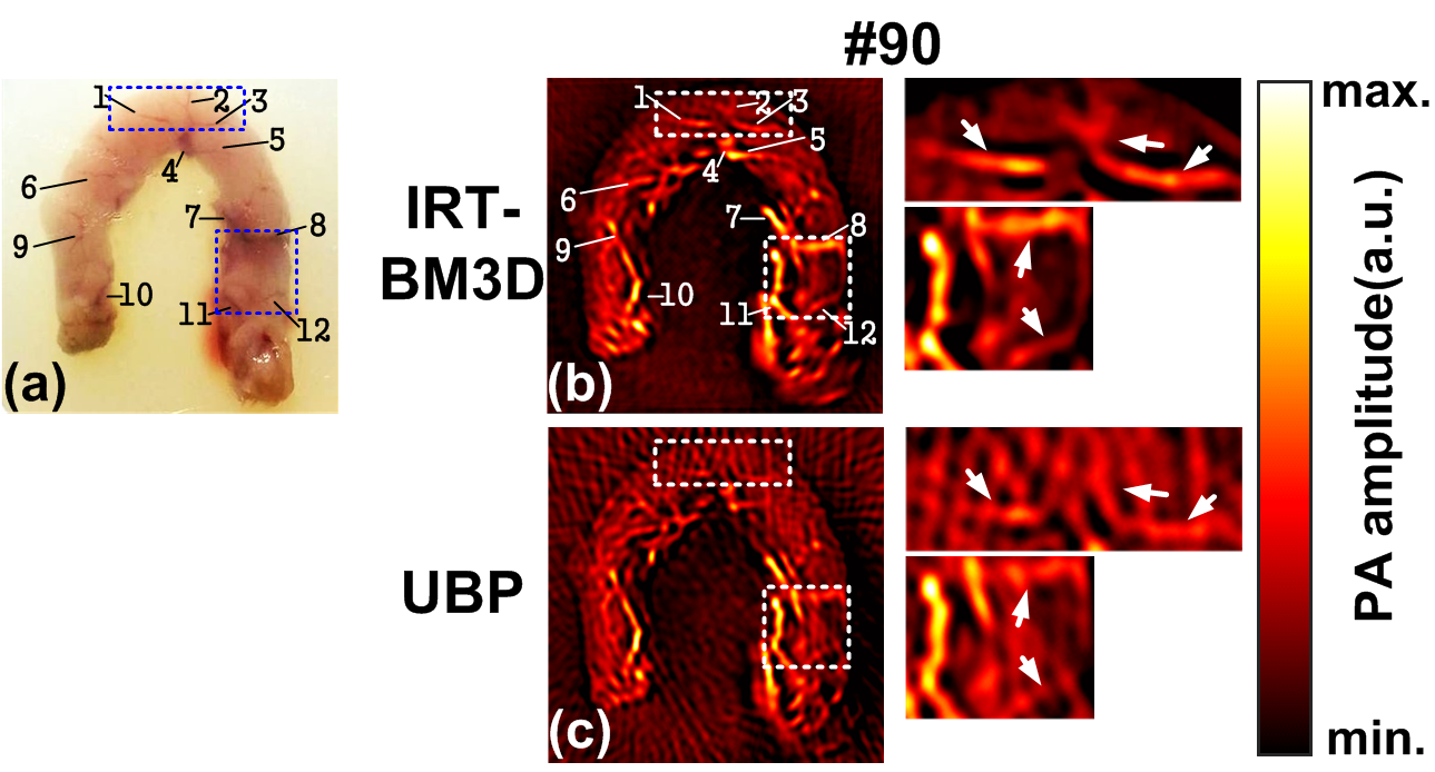 1. Yihan Wang, Huijuan Zhao, and Feng Gao et al, Enhancing sparse-view photoacoustic tomography with combined virtually parallel projecting and spatially adaptive filtering, Biomedical Optics Express, Vol. 9(9):4569-4587, 2018.
