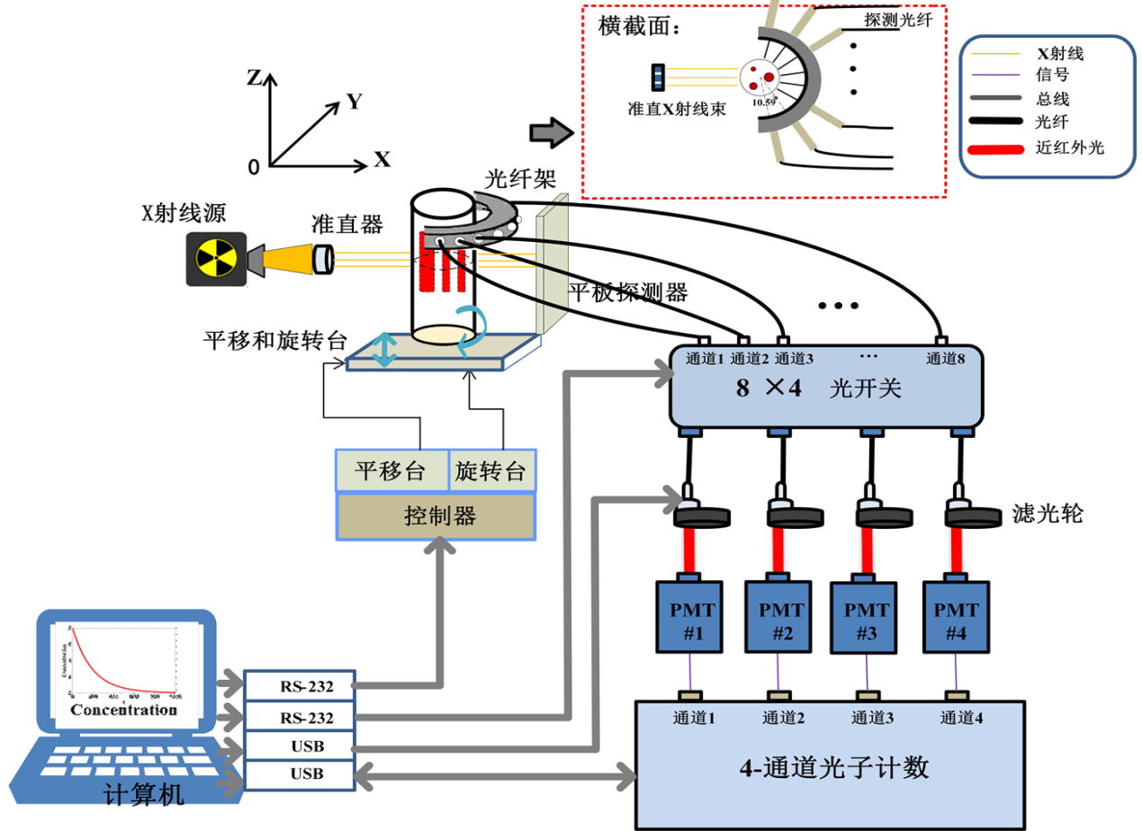 通过发展扫描式光子计数型XLCT测量系统,兼顾小动物锥束相衬XCT相兼容的一体化工作模式需求,可以保证系统具有较高的分辨率与灵敏度,并以其快速的测量时间实现动态功能成像。