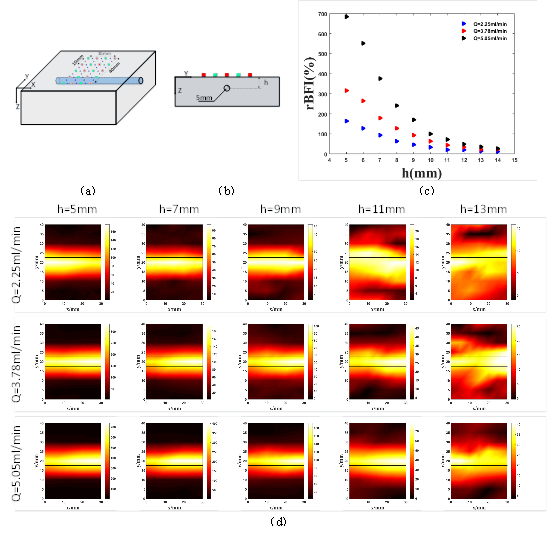 不同深度仿体实验结果表明,本课题组研究的系统与方法可以较高实现深度血流定量分期,并且具有较高的空间成像分辨能力。