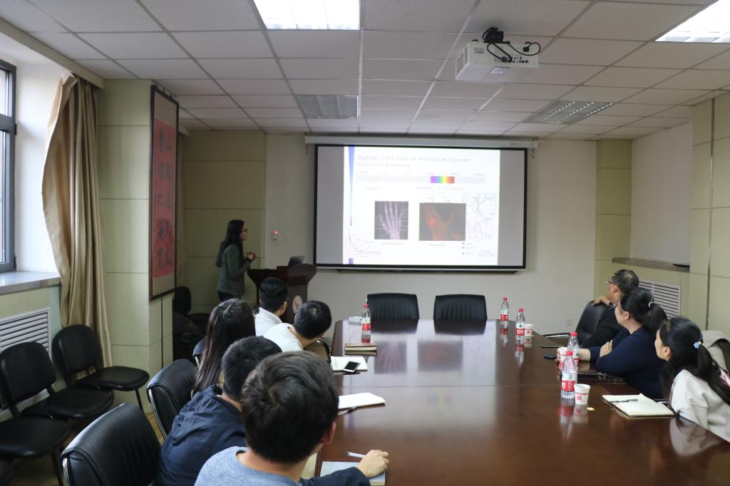 应高峰教授之邀,法国国家研究中心Anabela Da Silva博士于2019年11月14日访问生物医学光子成像实验室,并作题为生物组织的定量光声探测:获取多物理场信息”(Quantitative photoacoustic probing of biological tissues: accessing to multiphysics information content)和“偏振态门控漫反射光谱技术”(Diffuse reflectance spectroscopy with polarization gating)的两场报告。
