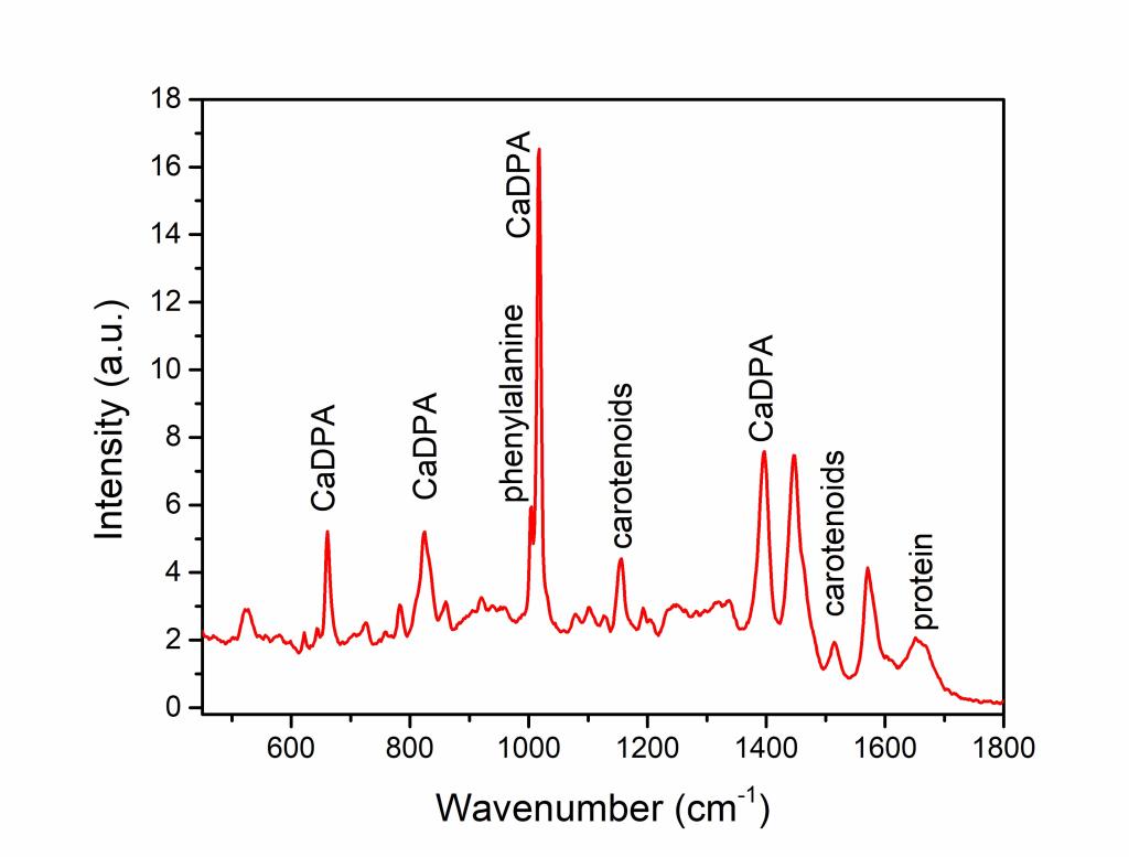 图2. 单个巨大芽孢杆菌孢子的拉曼光谱