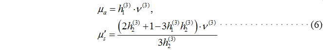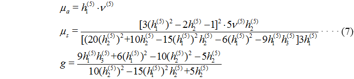 则全光学参数吸收系数、散射系数和各向异性因子可以通过有效衰减系数v(5)、h1(5)、h2(5)和h3(5)进行计算,如下: