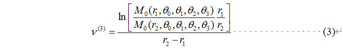 从已确定的S0Φl(3)(r), l = 0,1,2项,进一步求解与光学参数有关的中间变量h1(3)、h2(3)和v(3)。为了避免绝对测量,需要两个源探距离下的辐射率测量来除光源项,并进行展开,从而构建求解渐近衰减系数v(3)的表达式: