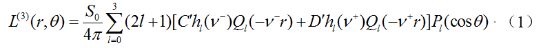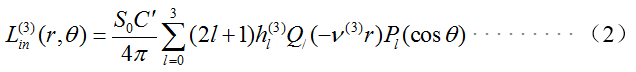 为光子位置方向向量;S0为光源;Pl为l阶勒让德多项式。Ql(x)为l阶修正的第二类球谐贝塞尔函数。v-和v+分别为渐近衰减系数和瞬时衰减系数。