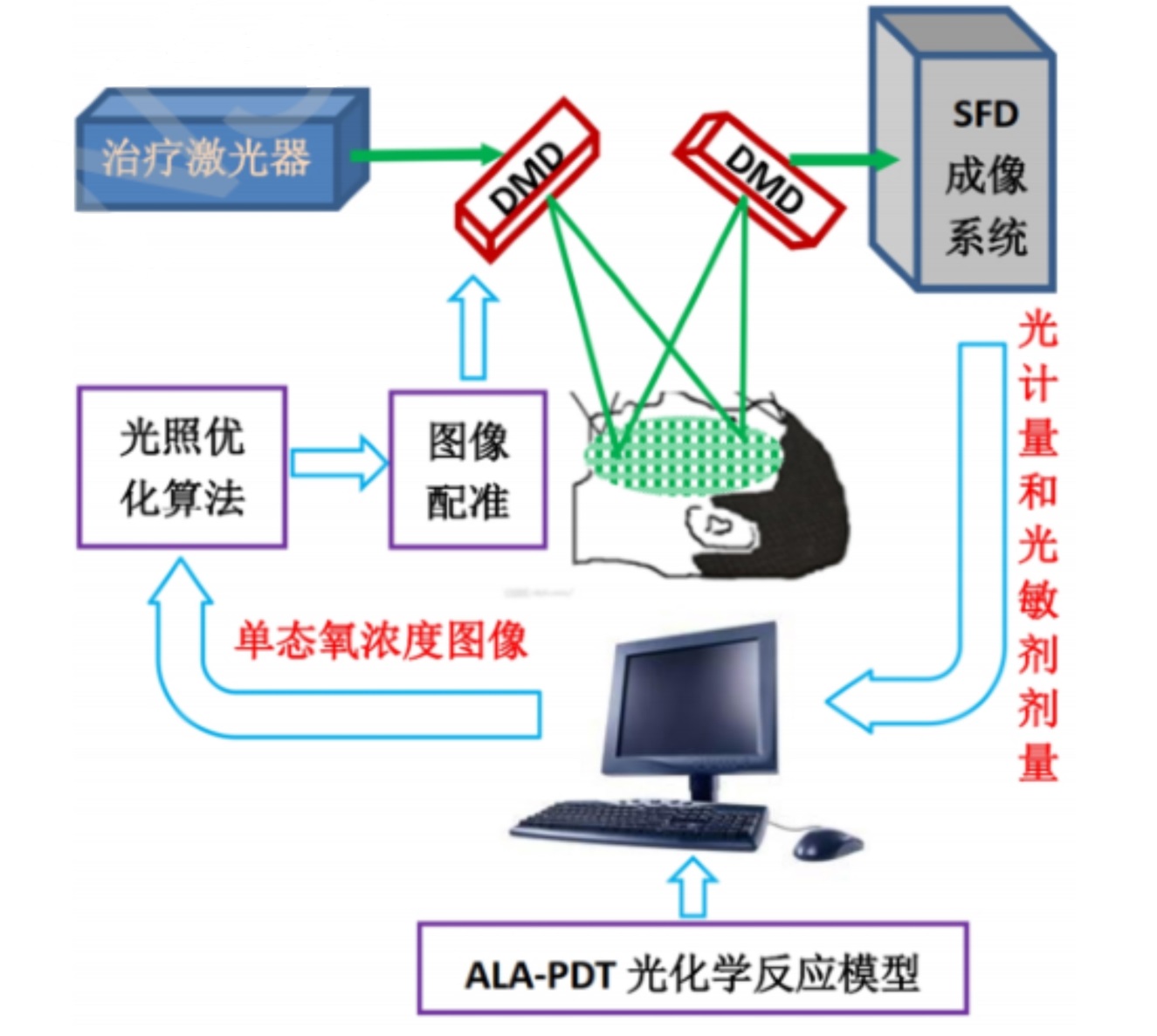 根据SFD-DOT/FMT获得的光通量分布和光敏剂浓度分布,通过ALD-PDT模型可预测被测组织体内的单态氧浓度分布。利用这些信息,可发展PDT光剂精准投放模型,优化治疗方案。